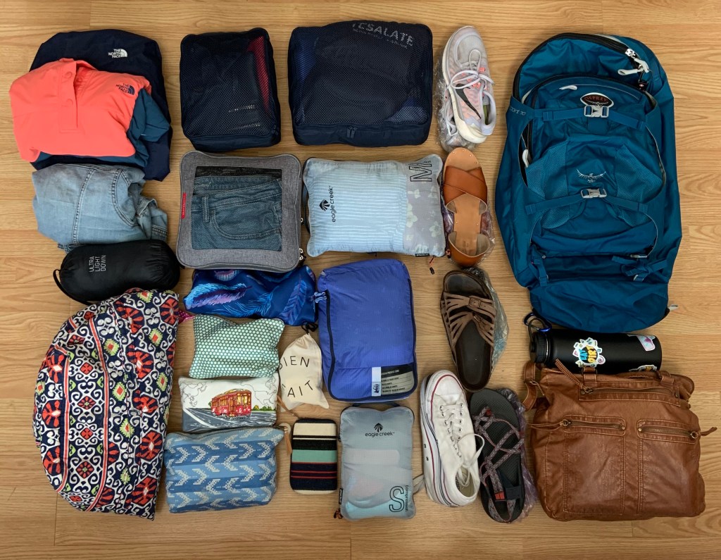 I can’t imagine what I’ve forgotten besides the kitchen sink. I still have some room for additional goodies I pickup, but I’d also like to get rid of some things along the way. I wouldn’t have been able to bring what I did without packing cubes, including a last-minute run to REI for more compression cubes.